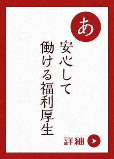資格支援制度、社会保険完備、労災保険、退職金制度 |
